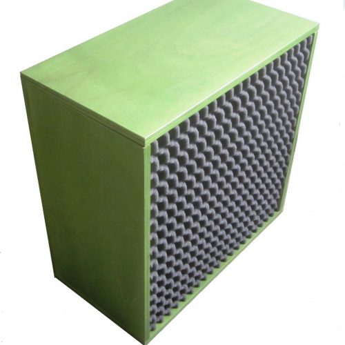 - Trappola fonoassorbente cubica a doppio effetto, ovvero con la possibilità di scegliere la banda di frequenza in cui si vuole ottimizzare l’effetto di assorbimento acustico